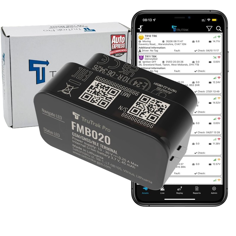 TruTrak Pro – FMB020 Low Profile GPS Tracker - Real Time Vehicle Tracker Device - Van, Motorhome, Tractor, Coach & Car Tracker - PAYG, 12-24V, Self-Install Including SIM & Data