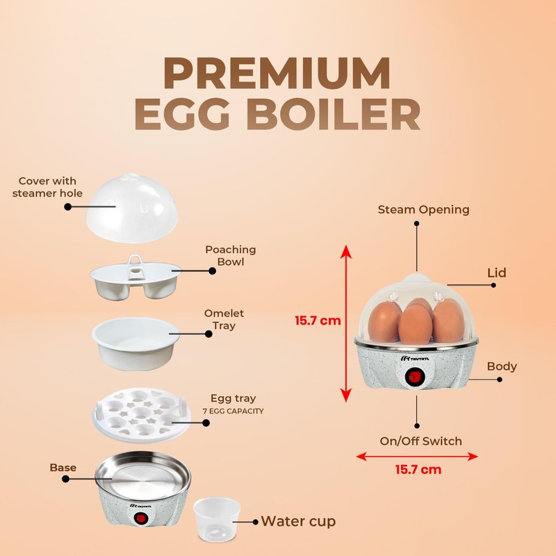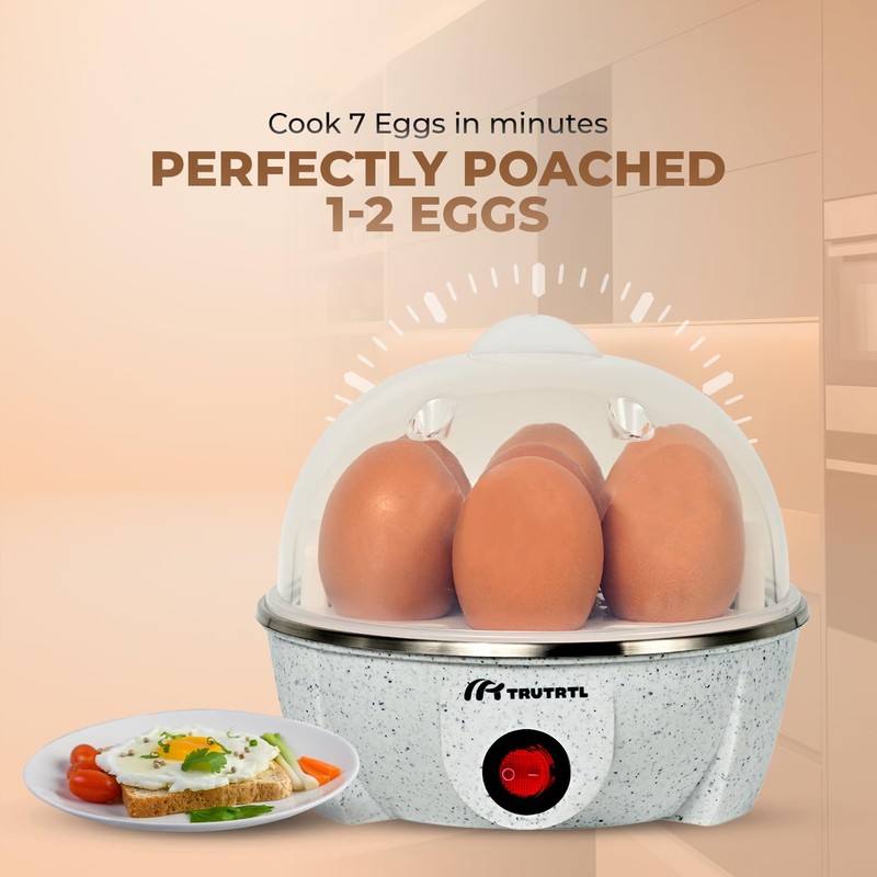 truTRTL Electric Egg Cooker | Boils upto 7 eggs | Poacher | Omelet maker | Vegetable steamer, dumpling & More | Marble