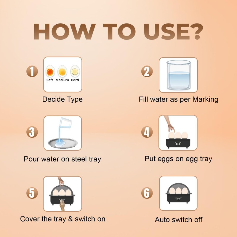 - NO WATCH NEEDED: This egg boiler turns off automatically after the egg boils, so you don't have to constantly check on your eggs.