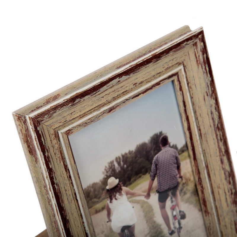 - DESIGN: Weathered, distressed picture frame that will accentuate the surroundings, while beautifully complimenting the photo with a rustic touch