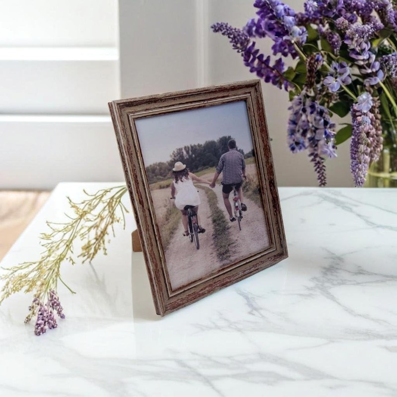 - DESIGN: Weathered, distressed picture frame that will accentuate the surroundings, while beautifully complimenting the photo with a rustic touch