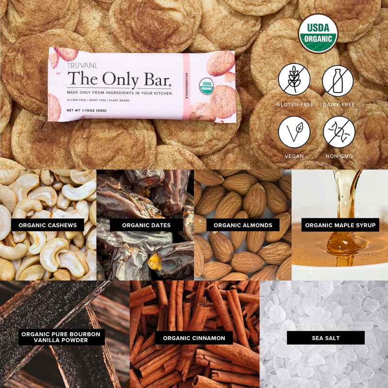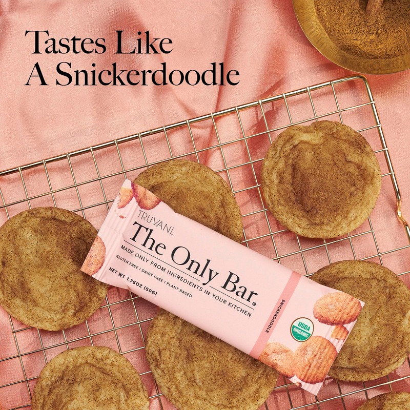 Truvani Plant Based Snack Bars | 5g Protein | 12 Pack Snickerdoodle | Organic | Vegan | The Only Bar | Dairy, Soy, and Gluten Free | Individually Wrapped