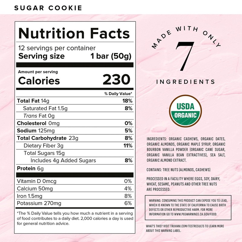 Truvani Plant Based Snack Bars | 6g Protein | 12 Pack Sugar Cookie | Organic ...