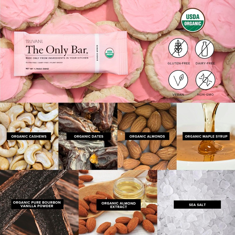Truvani Plant Based Snack Bars | 6g Protein | 12 Pack Sugar Cookie | Organic | Vegan | The Only Bar | Dairy, Soy, and Gluten Free | Individually Wrapped