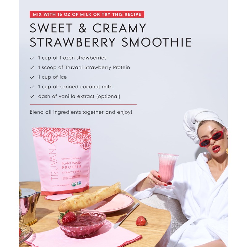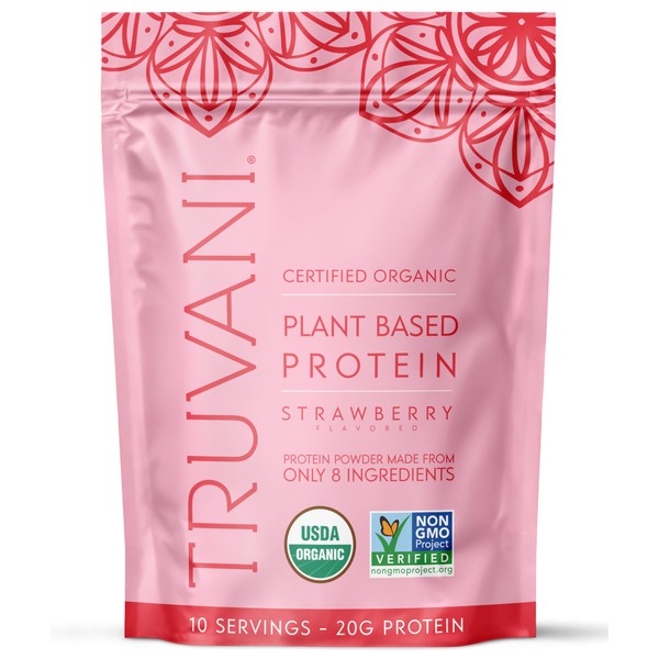 Truvani Vegan Pea Protein Powder | Strawberry | 20g Organic Plant Based Protein | 10 Servings | Keto | Gluten & Dairy Free | Low Carb | No Added Sugar