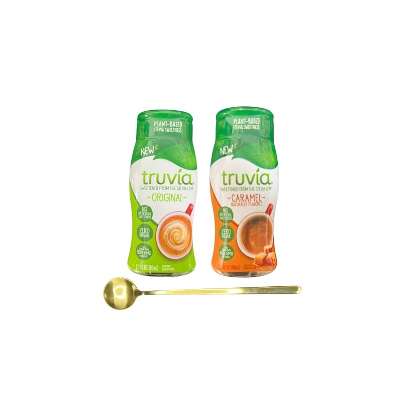 - ➙ Bundled included : 1 Truvia Liquid Sweetener,Zero caloria original 2.7 Fl oz. 1 Truvia Liquid Sweetener,Zero caloriacaramelo 2.7 Fl oz plus 1 SIXPAW-CKS Stirring