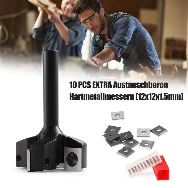 - Comes with reversible plates, reversible knife, pack of 10 replacement blades (12 x 12 x 1.5 mm, 35°), easy replacement of the blade doubles the life of the cutter. Surface bit Used for: For vertical milling machine or CNC wood router, maximum flexibility of use. Please check whether the screws are tightened before use.