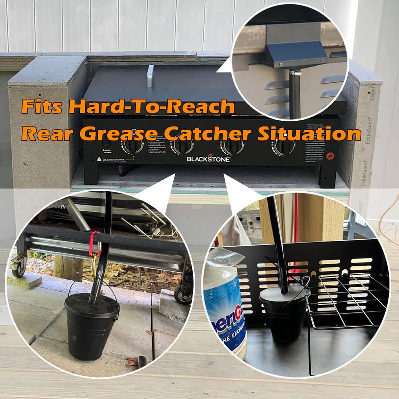 - GREAT CONVENIENCE: Say goodbye to those annoying interruptions caused by constantly emptying the Blackstone drip pans during cooking. Just open the bucket lid and remove the fullfilled grease bucket liner(. Gallon) instead of dealing with the grease drip tray which tends to fill up rapidly and easy to scald your hands when it is still hot. For hard-to-reach rear grease catch pan situation such as build-in grill island, it allows place grease bucket in an easily accessible spot.