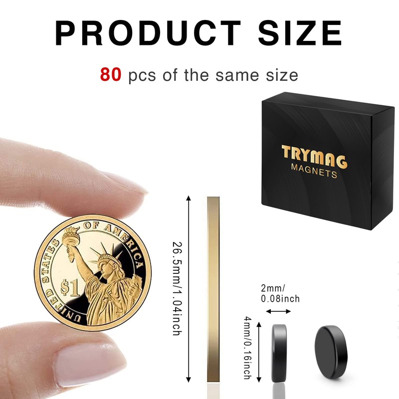 TRYMAG Small Magnets 80Pcs, Multi-Use Tiny Black Fridge Magnets Small Rare Earth Magnets for Whiteboard, Mini Neodymium Disc Magnets for Crafts, Office, Dry Erase Board, School