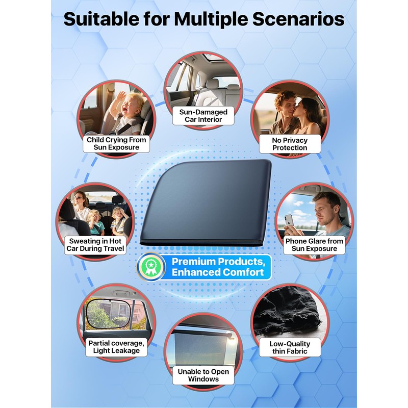 - [ArcticShield Dual-Layer Cooling Technology] Our sunshade combines UPF 50+ certified UV-blocking fabric with a reflective cooling layer to block 99% of harmful UV rays and infrared heat. Protect delicate skin and eyes while keeping your car cooler faster—ideal for summer road trips and daily drives. Avoid use during heavy rain.