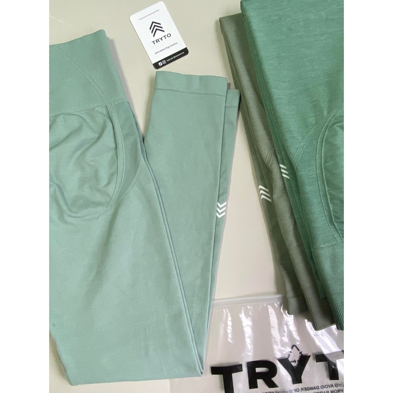 TRYTO Women's Active Easy Long / Regular Length Seamless Scrunch Legging Workout High Waist Butt Lifting Gym Fitness, Short/Regular Length Sage Green, Medium