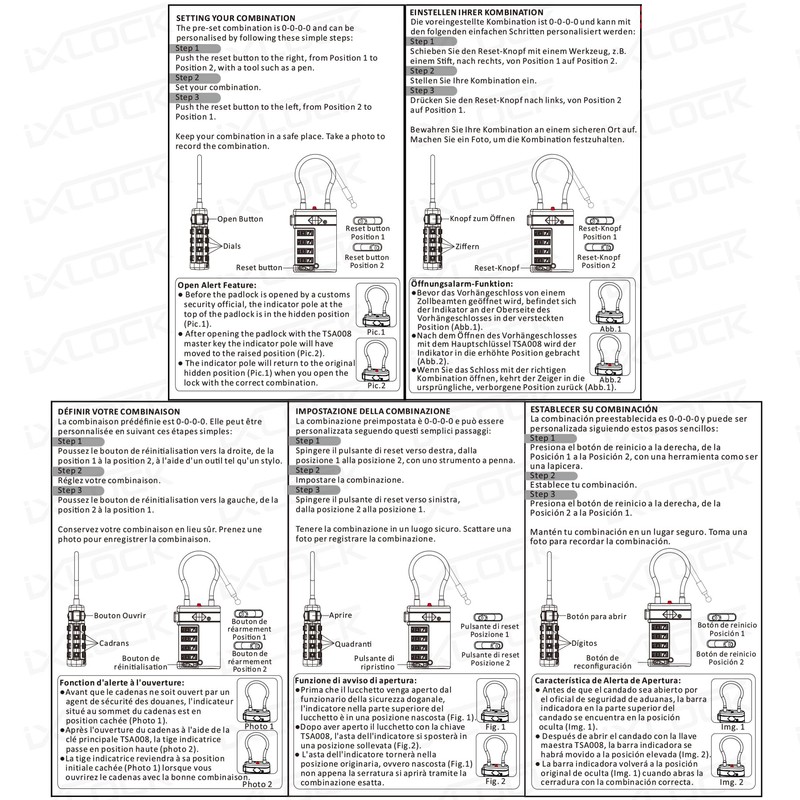 - 【Easy To Use】Combination padlocks for luggage with solid metal easy move dials. The small white triangle makes reading and setting your combination easy. Quickly reset pass codes in 3 simple steps an 8 year old can follow. Setting the combination requires a ballpoint pen. A TSA travel lock can also be used with airplane carry on cabin hand baggage. A TSA travel padlock with combination is a padlock for travel but can be used around the home. Luggage padlock case padlock keep belongings SAFE