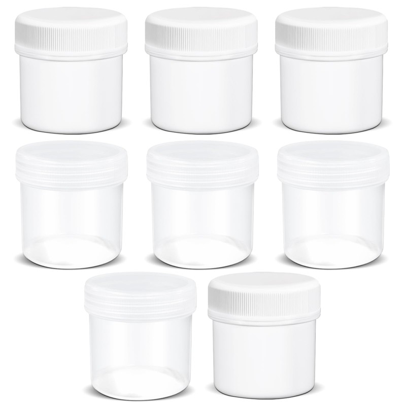- Attentive Service: What you will get is a set of 8 pcs of 1.7 oz empty plastic jars with lids. We also offer excellent service. If you have any questions or concerns, contact us, and we'll assist you promptly