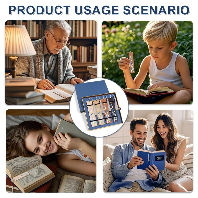 - What's Included: 4 beautifully painted wooden bookmarks, each with a stylish tassel, elegantly packaged in a charming gift box. A perfect gift for book lovers of all ages, men and women alike.