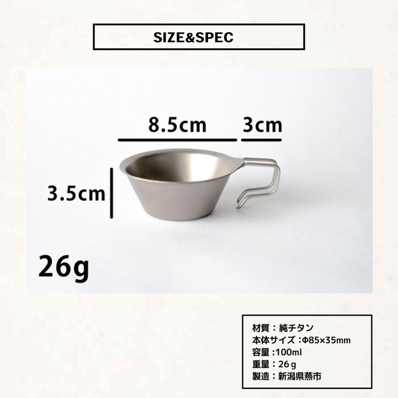 • [Product Details] Material: Pure Titanium, Product Size: Φ3.3 x 1.4 inches (85 x 35 mm), Capacity: 3.5 fl oz (100 ml), Weight: 0.9 oz (26 g), Made in Tsubame City, Niigata Prefecture