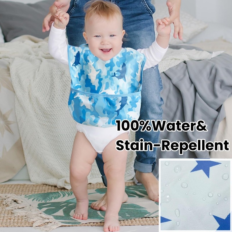 - Waterproof bibs: Featuring a waterproof material, our bibs keep messy spills contained, protecting your baby's outfits.Our mess-free feeding bibs are best waterproof bib for messy eaters .