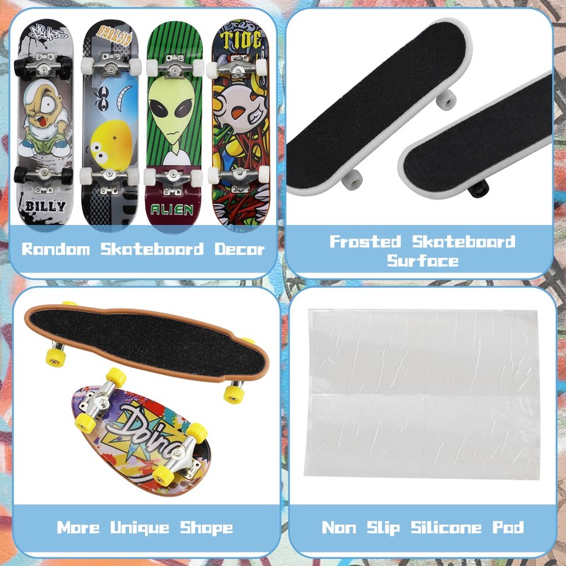 - Best gift: the package contains 5-finger skateboard ramp, 4-finger skateboards, multiple connecting rods, non-slip mat and they all come in a beautiful box, which is cool and exquisite as a birthday, children's day, Halloween, Christmas and other festive gifts for your friends or children