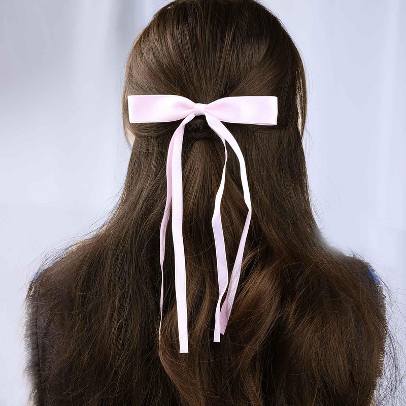 TseanYi Bow Satin Hair Clip Pink Ribbon Bow Hairclips Long Tassel Tail Bow Knot Clips Big Bow Ties Tail Barrette Bridal Satin Ribbon Barrette Winter Ribbon Bow Accessories