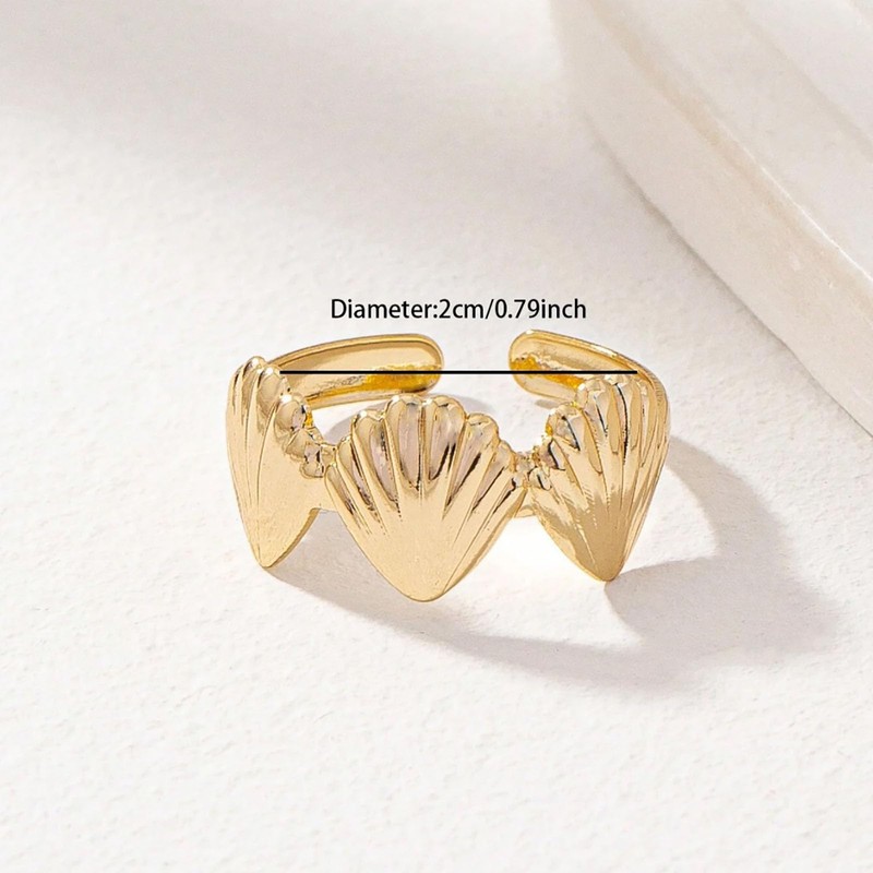 - Seashell open adjustable ring.Item Details:Handmade Item.Size:As Shown.Color:Gold.Materials:Ordinary Alloy.Style:Boho/Vintage.There will be slight errors due to manual measurement.Due to the shooting environment,there will be slight color difference