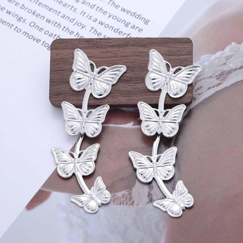 - Silver butterfly dangling earrings.Item design:A Unique and Stunning Jewellery.Unique Shape, Diversify Collocation.Used to Groom Your the Ear for a More Layered Look , It is Wonderful Everyday Jewelry,This Earrings is Very Trendy Designed in a Minimalist Style.
