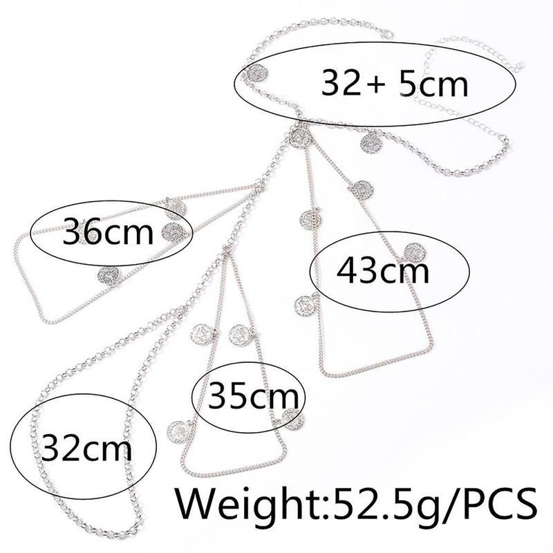 - Item design: the boho layered coin leg chain, made of an alloy. Unique shape, diversify collocation. Used to groom your legs for a more layered look, it is wonderful everyday jewellery, this leg chain is very trendy in a minimalist style.