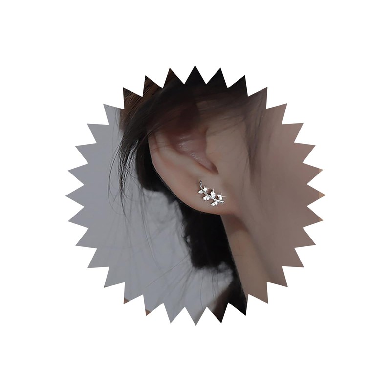 - Silver Leaf Crystal Clinber Earrings.Item Details:Handmade Item.Size:As Picture.Color:Silver.Materials:High Quality Alloy.Place:Earlobe.Style:Boho/Vintage.