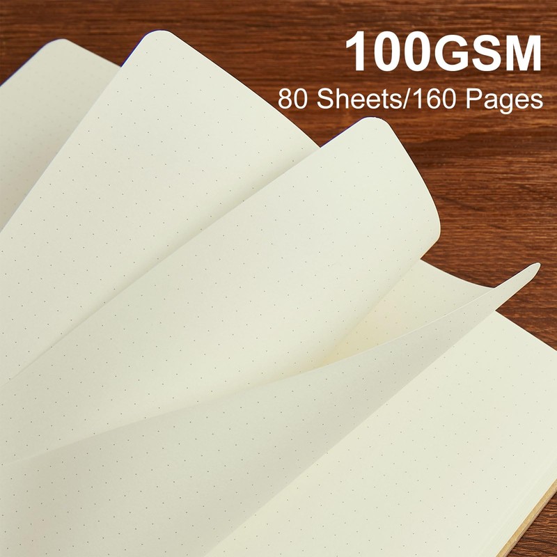 - 【160 Pages Of High Quality Paper】 Use 160 pages (80 sheets) of high quality 100Gsm acid-free paper dotted paper and light ivory color. These notebooks are very sturdy and durable. Very sturdy and ink doesn’t go through thick pages.