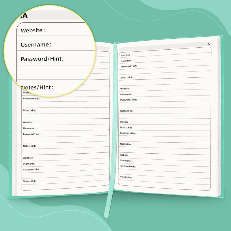 - PLENTY OF SPACES: measuring 5.3 x 7.7 inch, compact size provide enough spaces to keep more passwords for you needs.