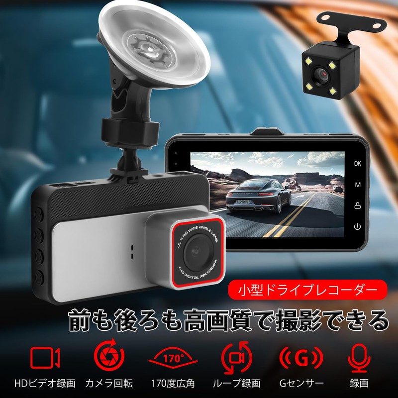 Drive Recorder, Front and Rear Camera, 1440P, 3-Inch LCD Screen, HD Image, 170° Ultra Wide Angle, Heat Resistant, Small Dash Camera, 64GB Card Included, HDR/WDR Image Correction Technology, Override Recording, Constant Recording, Motion Detection, Night Shooting, Engine Linked, Circuit Protection, Fast Recording, Easy Operation
