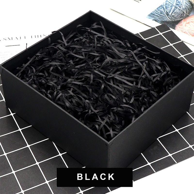 TSHAOUN 100 g Raffia Hamper Shreds, Shredded Tissue Paper Filling Material, Gift Filling Paper Shredded for DIY Party Filling and Gift Packaging for Gift Box Decorations (Black)