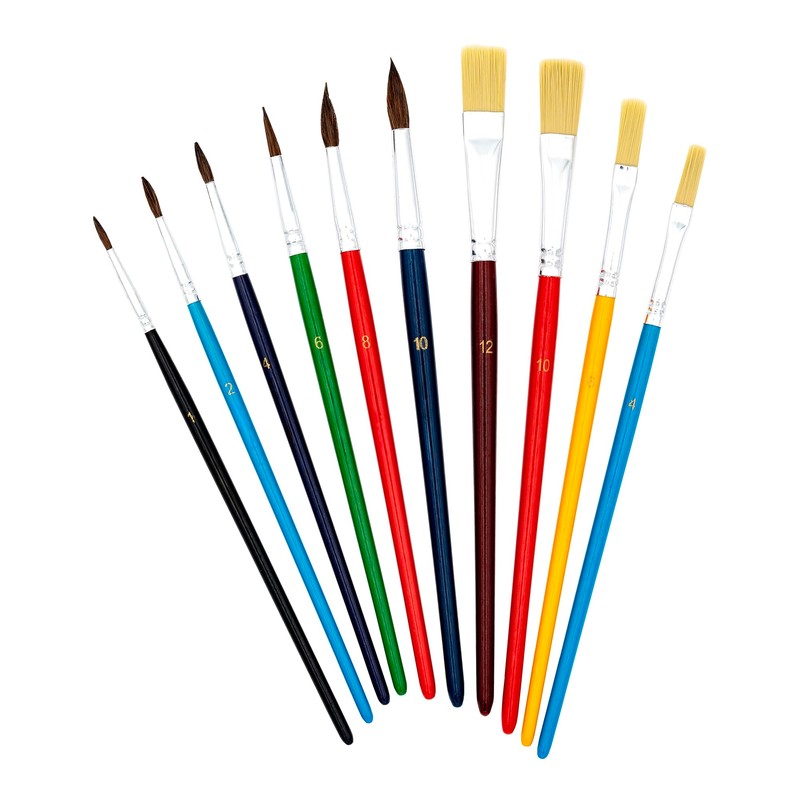 - Set consists of sizes 1, 2, 4, 6, 8, 10 (hair brush) and 4, 6, 10, 12 (bristle brush)