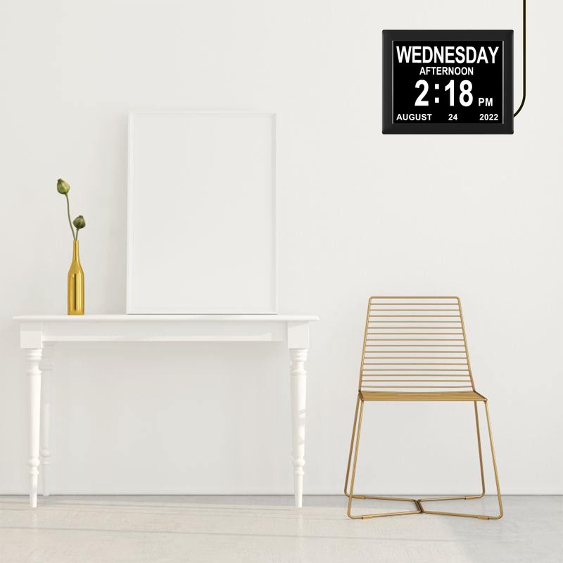 - 【Ultimate clarity】- The 8 inches Calendar Day Clock crystal clear high definition color display ensures a sharp, crisp image displaying the full color spectrum with a 170° viewing angle that can be seen from all sides of the room.
