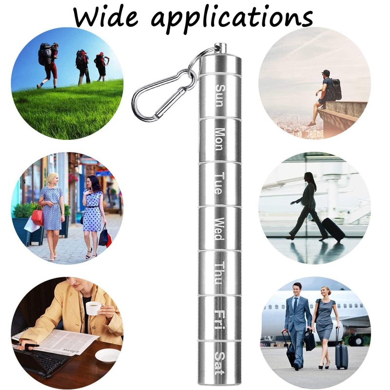 - 【Pill Organizer Weekly】-- This silver pill case has 7 compartments, each divider is 3 x 2.5cm in size, good for 7-day pill storage box 2 to 4 times a day according to your pill size.