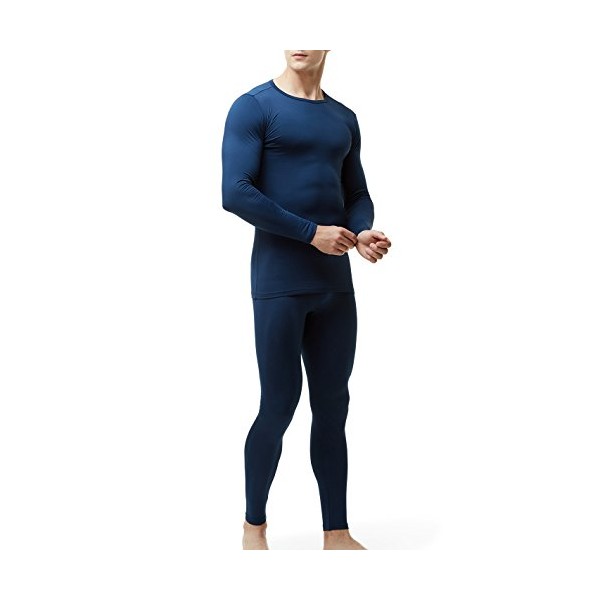 TSLA Men's Thermal Underwear Set, Microfiber Soft Fleece Lined Long Johns, Winter Warm Base Layer Top & Bottom, Thermal Fleece Navy, Small