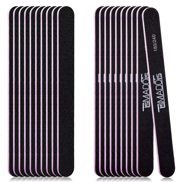 TsMADDTs - Limas de uñas de grano 180/240 para uñas de acrílico natural, limas de uñas de doble cara, lavables, para niñas, mujeres y hombres