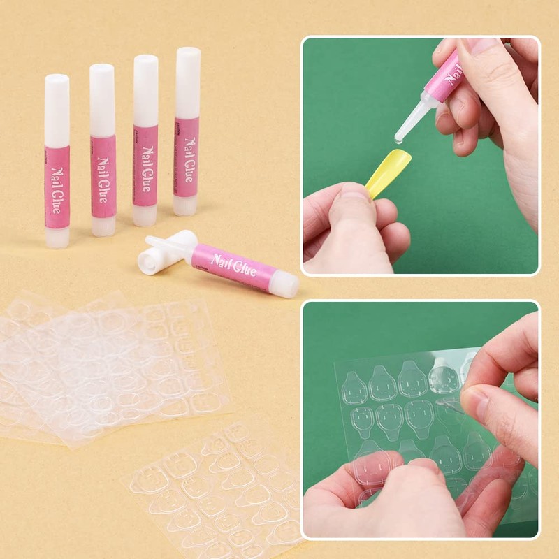 - Use Nail Gule or Gule Tabs: Prepared 10g nail glues and 5 sheets tabs for you to chooes. You choose the right fake nail and press the nail glue/stickers for to finish your awesome nail art within minutes. Nail glues are fast drying, quick bonding, adhesive perfect, can last about 2 weeks. Nail tabs are double sides, will not hurt your nail and easy to pick off
