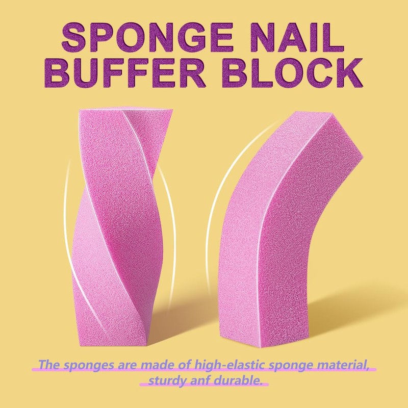 - Colorful Nail Buffer Blocks: The sponges are made of high-elastic sponge materials, sturdy and durable. Polishing and smoothing with a lighter touch without damaging the nail. 6 Colors: green, orange, blue, yellow, purple and pink.