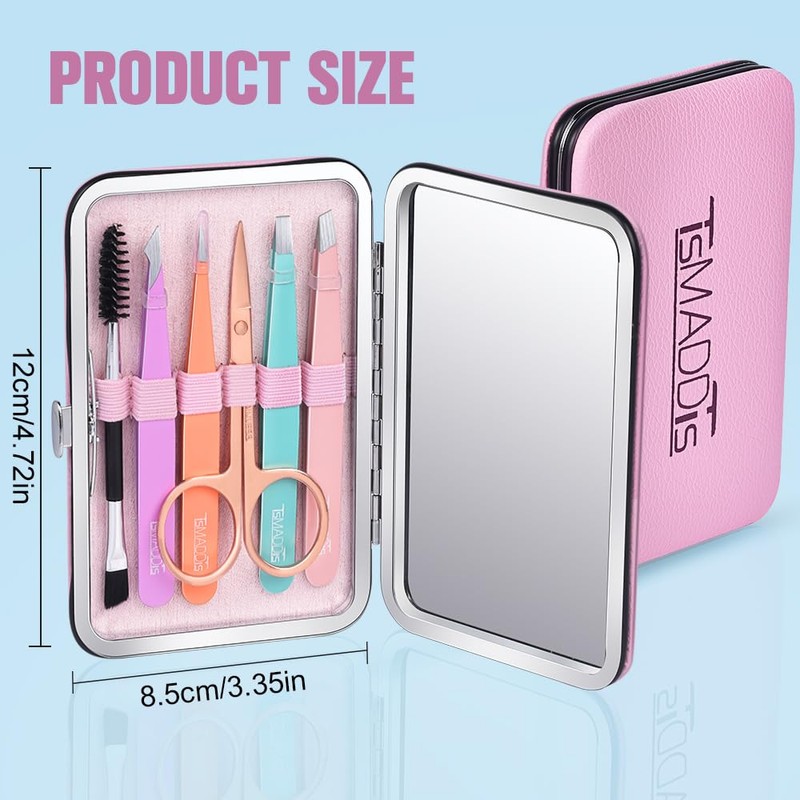 - TRAVEL CASE DESIGN: Tweezer tools and mirror are combined in a fine travel leather holster. That is perfect for gifting or travel. High definition mirror and tweezers of women inside are to meet all your eyebrow shaping and makeup routine.