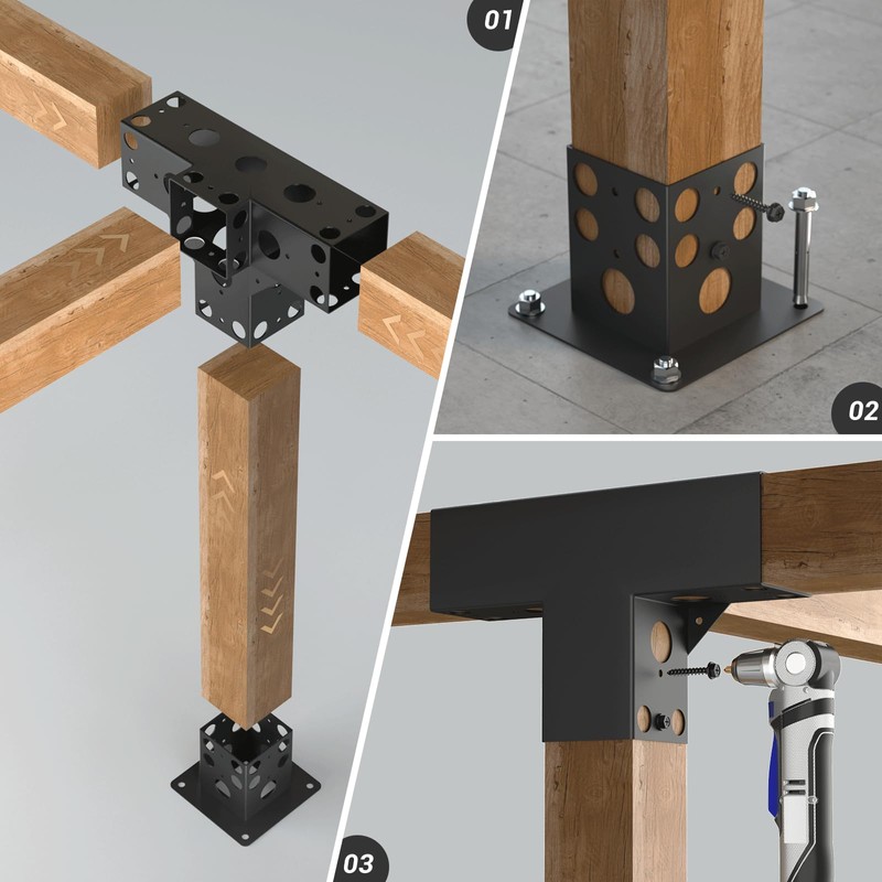 - ❤️High-quality Material:TSMST'S pergola kit steel brackets is made of thickened durable carbon structural steel, powder-coated black surface, professional anti-corrosion operation, it's sturdy and durable.