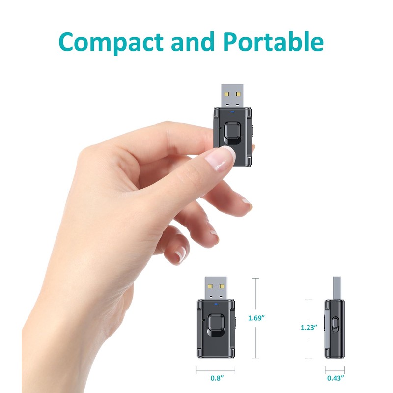 - EASY TO USE: Plug the Bluetooth adapter into the USB port, and you can start transmitting or receiving audio right away. Plus, its compact and portable design lets you slip it easily into any pocket.