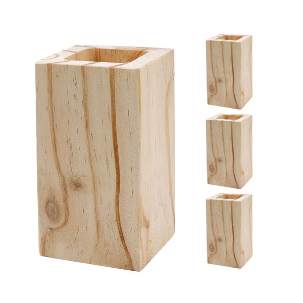 Tsnamay 4Pcs Cuboid Wood Bed Risers Furniture Risers Wooden Solid Original Color for DIY Painting Sofa Couch Chair Table Increase Legs Square Port 1.77",Increase Height 3.94" Inches