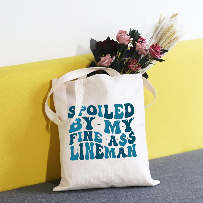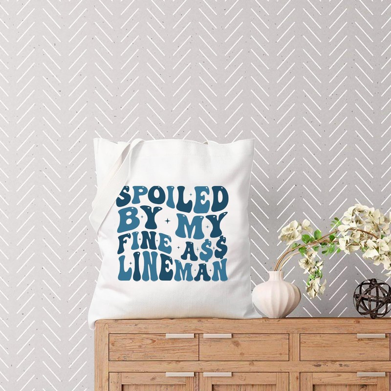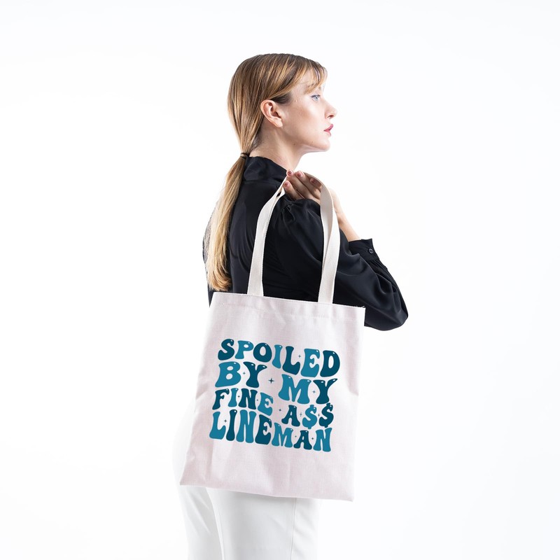 TSOTMO Lineman Wife Gift Journeyman Lineman Wife Gift Spoiled By My Fine Ass Lineman Canvas Tote Bag (Ass Lineman tote CA)