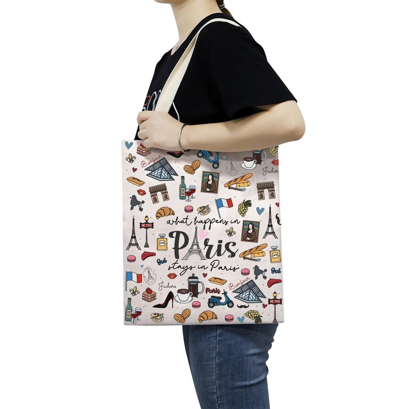 TSOTMO Paris Trip Tote Bag - Multicolour Eiffel Tower Pattern - Waterproof Polyester - Unisex Adult - Travel, Outdoor