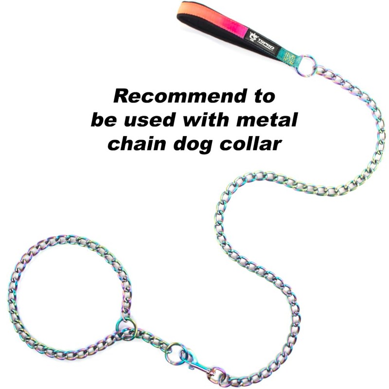 - Padded handle and D-ring can be rotated 360 degrees: our dog chain lead has a soft padded neoprene handle that provides a comfortable foam grip to protect your hands perfectly when pulling. With D-ring can be rotated 360 degrees to easily attach collars and harnesses