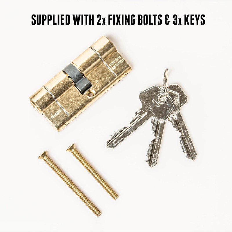 TSS Polished Brass High Security TS007 1 Star Euro Cylinder Lock, British Standard, Insurance Approved Barrel Lock and Key Sets. Supplied with 3 Keys. UPVC Door Locks. Brass (40mm x 40mm (80mm Total))