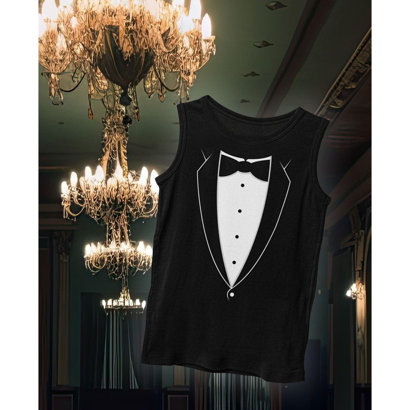 - Tuxedo tank top for men; A funny easy last-minute costume for Halloween, wedding, or any event