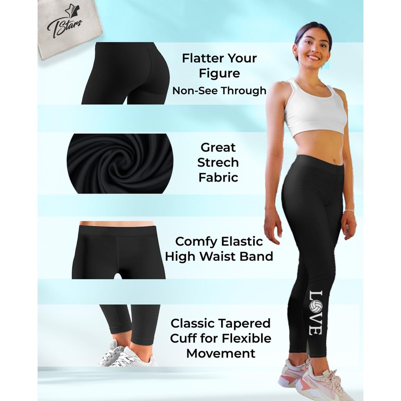 Tstars Volleyball Leggings for Women Teen Girls Gift for Fans Team Players Love Tights Legging Large Black
