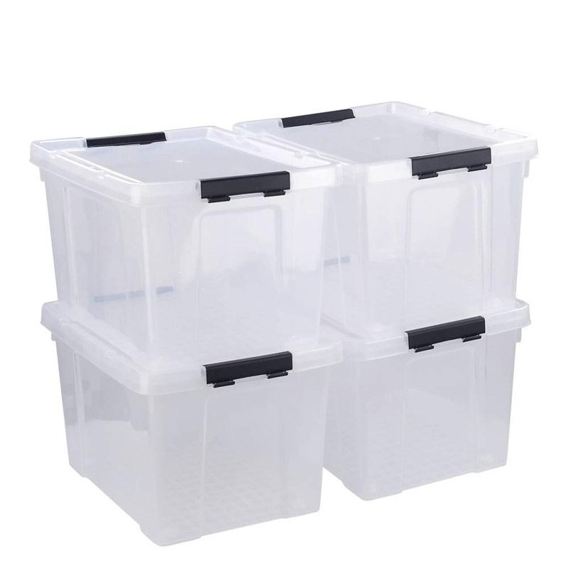 - Transparent boxes have visibility, with large capacity can hold most types of daily necessities, such as toiletry supplies, shoes, down jacket, quilts, toys, office documents, fruits, vegetables, etc