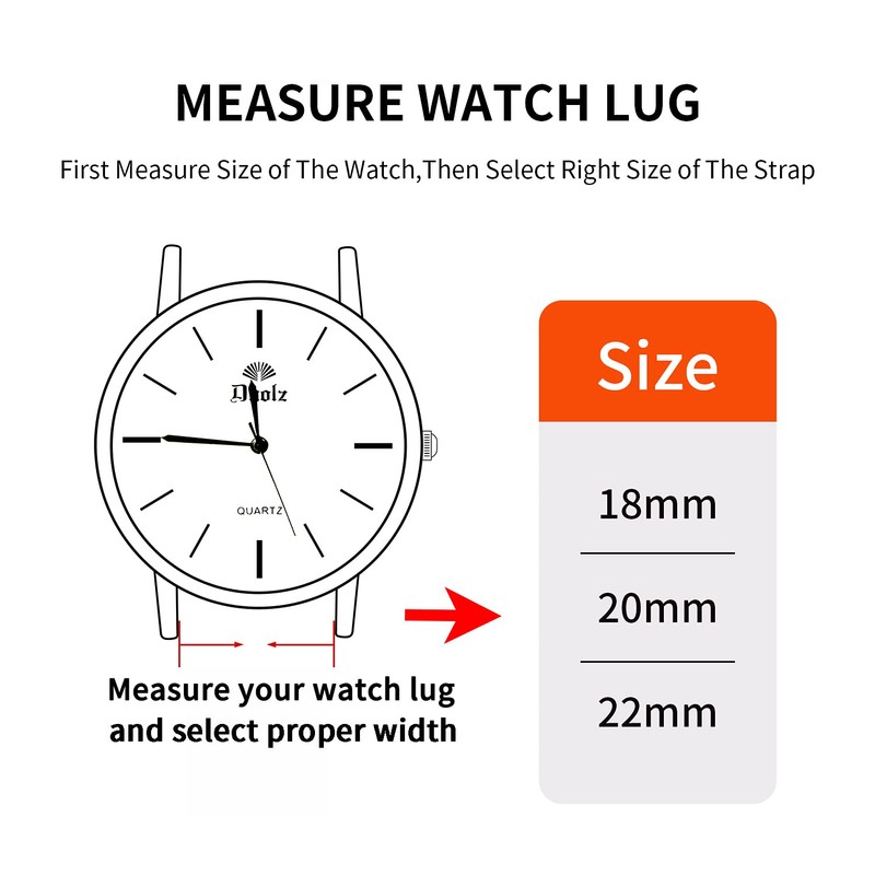 - Strap size: The length of the strap is 120 mm / 80 mm (without buckle) with 11 adjustable holes. Can fit wrists from approximately 5.3 inches to approximately 7.8 inches, which is a comfortable fit for most men and women. However, the watch geometry also affects the fit. -