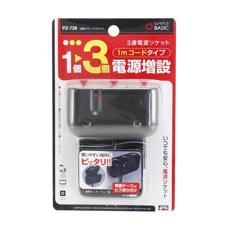 Tsuchiya Yak PZ-726 Car Supplies, Socket Distributor, 3-Way Direct Socket Direction